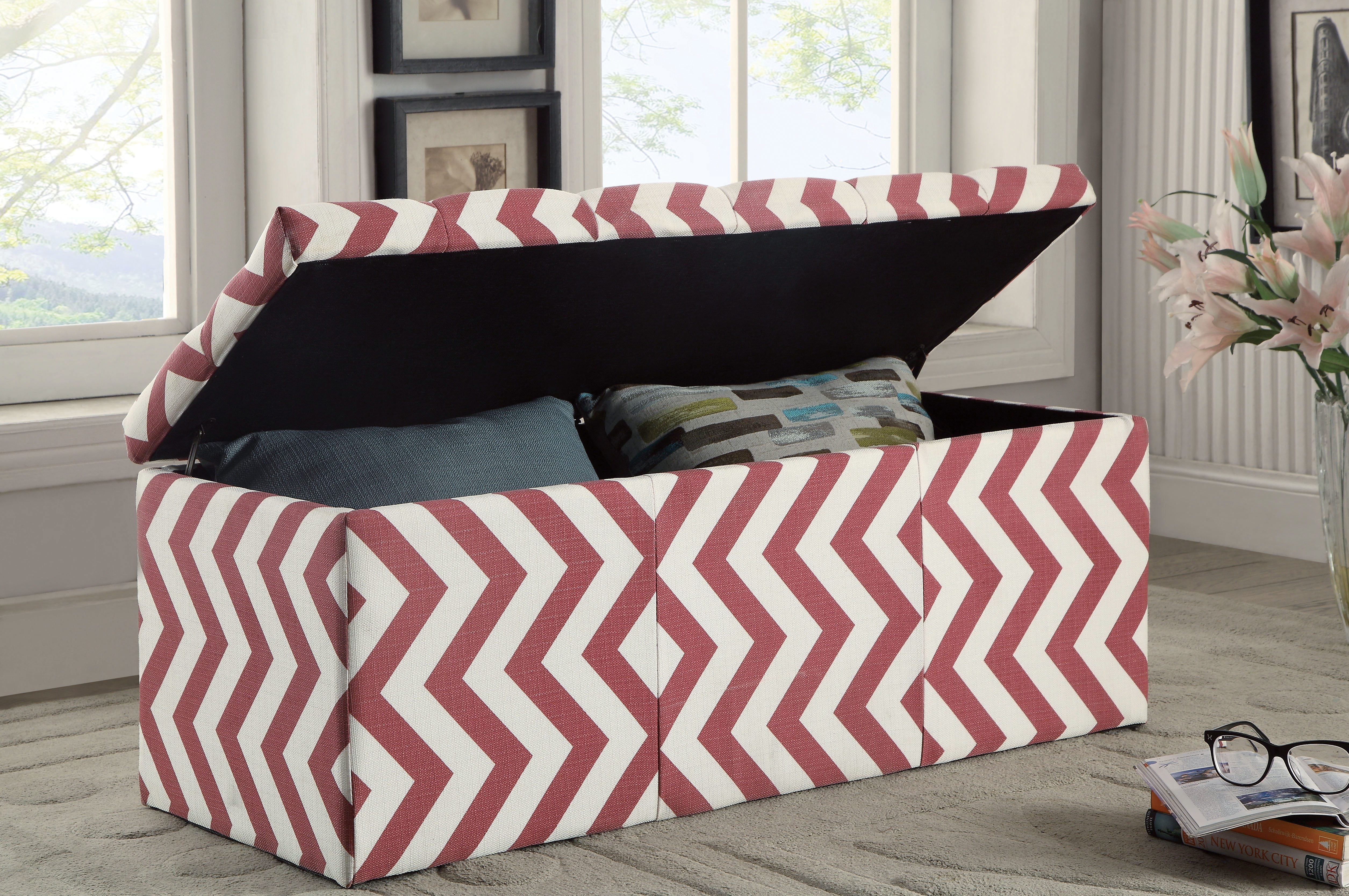 Product title better homes and gardens pintucked storage bench, red average rating: Storage and seating are an issue in many homes, especially when it comes to the bedroom. It will turn a pale color palette of a bedroom into a livelier one. Perfect in the living room or bedroom, this bench has style and smart features galore. In addition, it will help improving the inviting air in a bedroom.